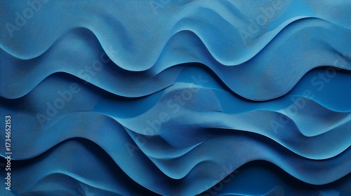 © kamral, Obraz premium A creative blue wallpaper with a blend of waves and geometric shapes