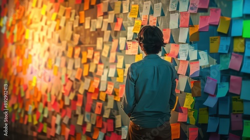 © Ibad, Obraz premium A creative brainstorming session with sticky notes on a wall