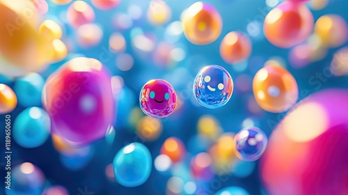 © Watanabe, Naklejka premium A creative depiction of a virtual group chat, represented by colorful icons and avatars floating in a digital space.