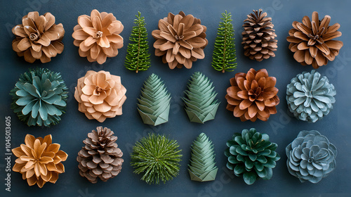 © Pter, Fototapeta premium A Creative Eco-Friendly Christmas Decorations with Paper Bags and Ample Copy Space for Greeting Cards