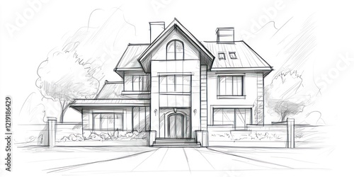 © inthasone, Obraz premium A creative hand-drawn architectural sketch of a conceptual house design, blending classic and modern elements
