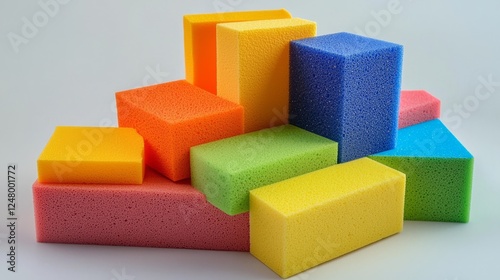 Fototapeta premium A creative layout featuring an assortment of bright foam blocks.