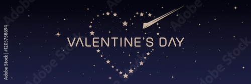 Naklejka premium A creative minimalist Valentine's Day poster design with a space theme. There's a heart made of stars in the night sky, with a shooting star streaking across the sky.