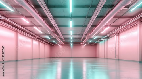 Fototapeta premium A creatively designed space featuring pastel-colored walls and industrial...
