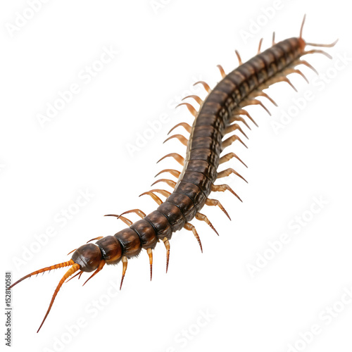© woopics, Fototapeta premium A creepy crawling garden centipede with multiple legs isolated on a transparent background