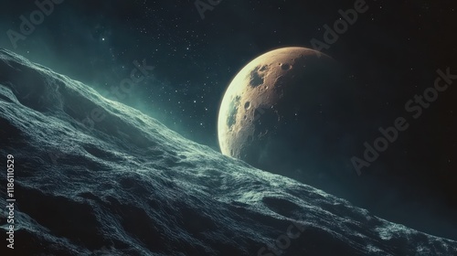 Fototapeta premium A Crescent Moon Rising Over a Rugged, Icy Landscape