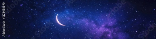 Fototapeta premium A crescent moon shines brightly in the night sky surrounded by stars