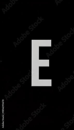 © Chalermrach, Obraz premium A crisp, white letter E stands out against a stark, minimalist black background , bold, graphic