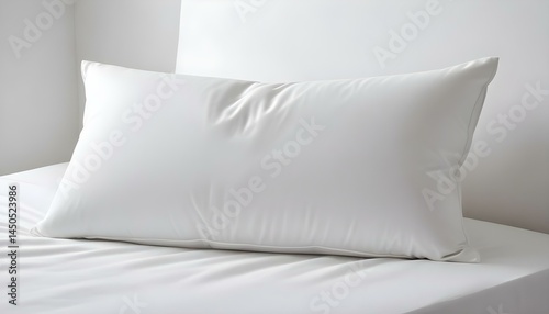 Obraz premium A crisp white pillow rests peacefully on a bed, inviting relaxation and a...