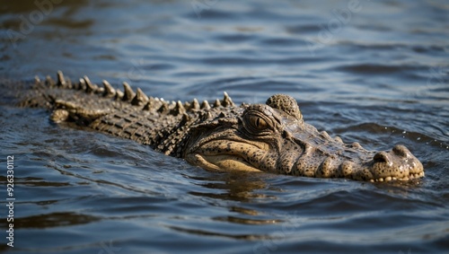 Obraz premium a crocodile that swims in an African river
