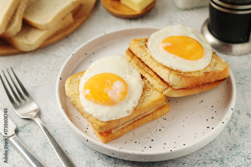 Fototapeta premium A croque madame sandwich, traditional dish of French cuisine