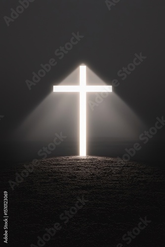© Sangsung, Naklejka premium A cross is lit up in the dark, creating a sense of hope and faith