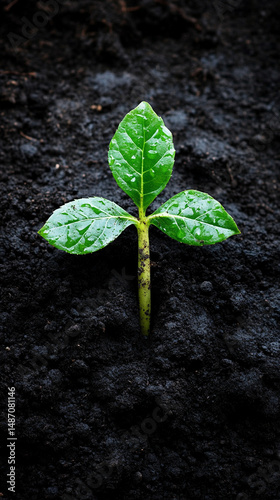 Naklejka premium A cross-shaped minimalistic three-leaved plant emerging from fertile soil,...