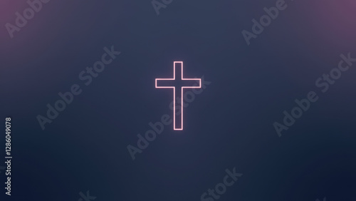© Tameem, Obraz premium A cross shining brightly against a dark background.