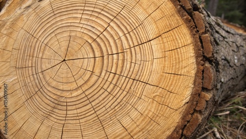 Naklejka premium A crosssection of a thick timber reveals delicate rings of growth the...