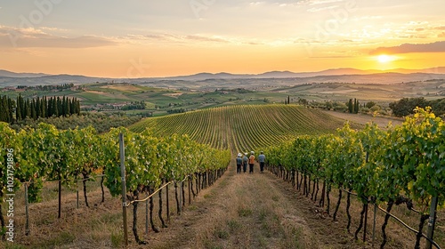 © Olga, Naklejka premium A crowd gathered on a verdant hilltop, surrounded by cloud-filled skies