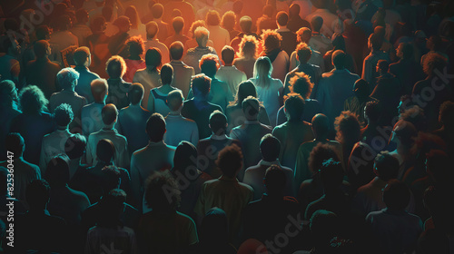 © mila103, Obraz premium A crowd of people are standing in a dark room