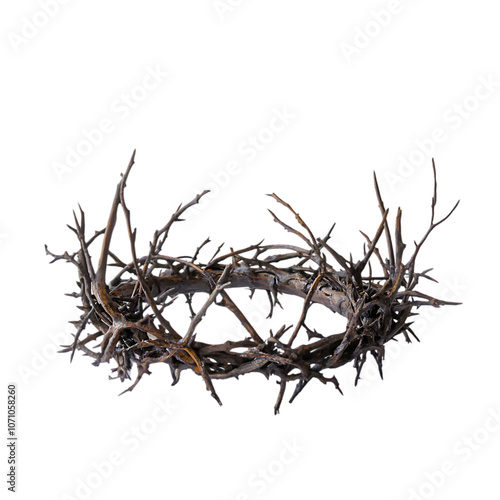© Mehboob, Fototapeta premium A crown of tree branches with sharp long xiphoid thorns on a white background