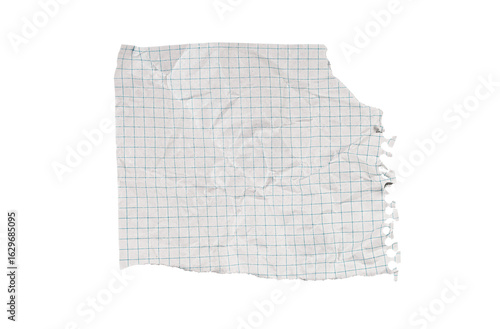 © Minakryn Ruslan , Obraz premium A crumpled torn checkered paper on a white background enhances art projects. Its textured surface inspires unique sketches and creative designs.