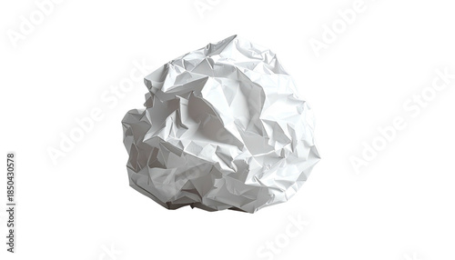 © Arifbudiman, Fototapeta premium A crumpled white paper ball against a stark black backdrop. Close up shot reveals texture and shadows