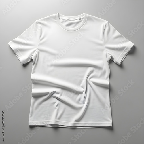 © Poly01, Fototapeta premium A crumpled white t shirt on a gray background