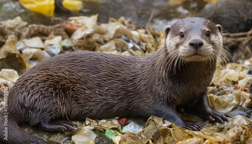 Obraz premium A Cry for Help: An Otter Swimming in a Polluted Habitat