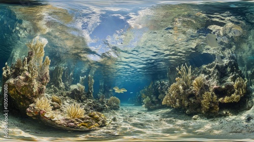 Fototapeta premium A crystal-clear underwater view of a coral reef