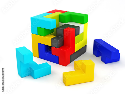 © Maksym Yemelyanov, Obraz premium A cube built from blocks. Puzzle