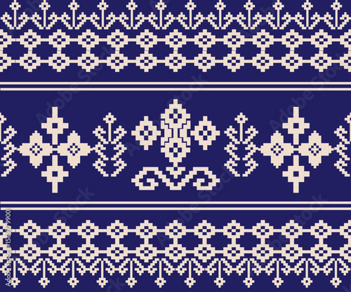 Obraz premium A culturally rich seamless design in dark blue and white, showcasing delicate...