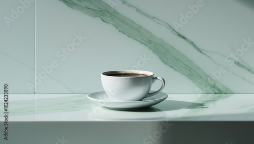 © DEER FLUFFY, Obraz premium a cup of black coffee on a green marble background.