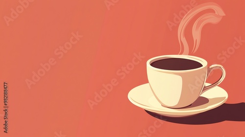 © BozStock, Obraz premium A cup of coffee with steam rising on a red background.