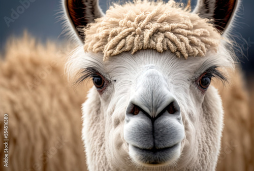© The 2R Artificiality, Obraz premium A curious alpaca posing for a picture. Generative AI