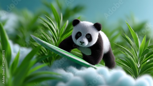 Fototapeta premium A curious and adorable panda bear exploring the tranquil and verdant bamboo...