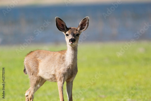 Fototapeta premium A curious baby deer in an open clearing