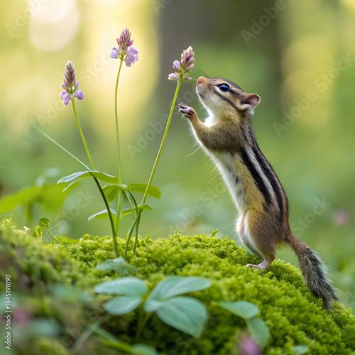 © Ali, Fototapeta premium a curious chipmunk with prominent stripes