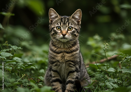 © efendiahd, Fototapeta premium A Curious Kitten Amidst Lush Greenery: A Captivating Portrait of Feline Elegance in Nature's Embrace