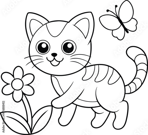 Obraz premium A Curious Kitten Chasing A Butterfly In A Sunny Garden Coloring Pages
