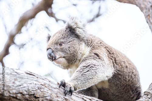 Obraz premium A Curious Koala Perched on a Tree Branch