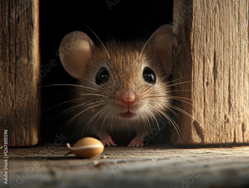 © Priya, Fototapeta premium A Curious Mouse Peeks Out From Its Hole
