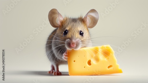 © venusvi, Fototapeta premium a curious mouse sniffing a piece of cheese