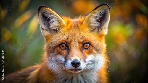 © Adisorn, Fototapeta premium A curious orange fox gazes intensely with piercing eyes, its bushy tail twitching with excitement, as if sharing a secret.