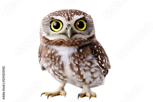 © Zape, Naklejka premium A curious owl with large golden eyes, perched on a white surface. Transparent background