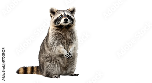Fototapeta premium A curious raccoon stands isolated on transparent background