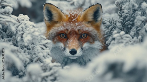 © Vladimir, Fototapeta premium A curious red fox in winter.