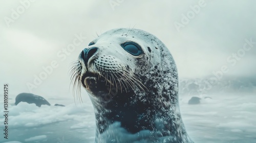 © BanklangArtshop, Fototapeta premium A curious seal in a misty ocean environment.