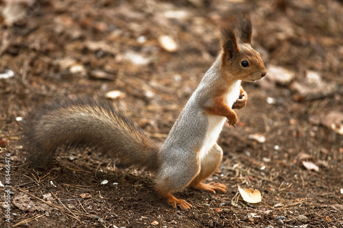 Naklejka premium A curious squirrel standing on hind legs