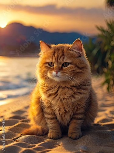 © Phongphan, Obraz premium A curious tabby cat surveys its domain, perched atop a fence and a grassy rooftop