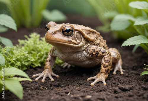© jarntag, Fototapeta premium A curious toad hopping through a garden.