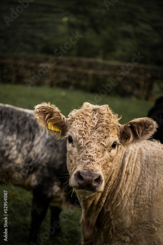© miketea88, Fototapeta premium A Curly haired cow on a farm field in Cumbria, England