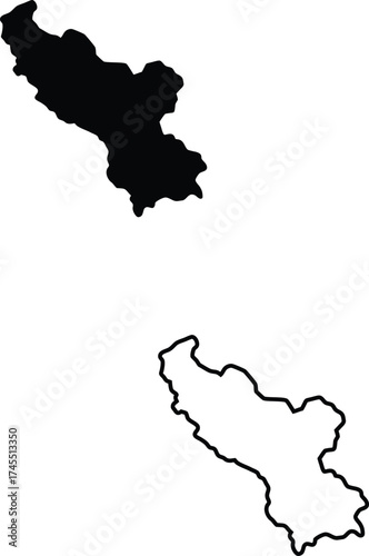 Fototapeta premium A curvy, irregular geographical area is shown as a solid black shape and a line art contour